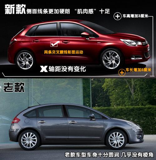一般意義上來(lái)說(shuō),區(qū)別一款車型是不是小改款車型主要看是否只是改動(dòng)了車身前后的造型。而全新的雪鐵龍C4的絕對(duì)可以稱得上新車,通過(guò)車身側(cè)面的對(duì)比我們可以清楚的看到,在C柱部分已經(jīng)進(jìn)行了重新設(shè)計(jì),而側(cè)面不對(duì)稱的交叉腰線在彰顯了個(gè)性的同時(shí)也提升了整車造型的質(zhì)感。
