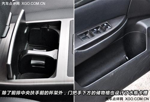 前排空間中,除了當(dāng)把后面的兩個杯架以外,門把手下方的儲物格也特別設(shè)計了放置水瓶的卡槽,可以將水瓶穩(wěn)固的放置其中,中央扶手的儲物格分上下兩層,上層稍淺,可放小物件,下層略深則可以容納更多的物品。
