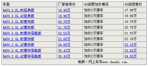 RAV4自去年4月份上市以來,憑借超高的性價(jià)比得到眾多SUV車友的喜愛,豐田RAV4是定位在一款城市SUV,它配置了主動扭矩分配控制四輪驅(qū)動系統(tǒng),同時(shí)兼?zhèn)湓诔鞘械缆泛驮揭奥范蔚膬?yōu)異行駛性能。據(jù)網(wǎng)上價(jià)格監(jiān)測系統(tǒng)顯示:豐田RAV4豪華升級版現(xiàn)已到店銷售,RAV4最高優(yōu)惠達(dá)到了15000元,最低僅售17.98萬,具體詳情請見下表: