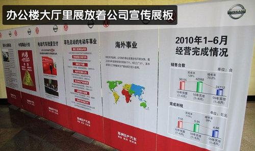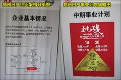 鄭州日產(chǎn)辦公樓大廳里展放著公司宣傳板,可以從中了解到鄭州日產(chǎn)今上半年的銷售完成情況,上半年共計完成了4.2萬輛。還可以了解到鄭州日產(chǎn)企業(yè)的組織構(gòu)架,和直接了解到鄭州日產(chǎn)目前去不在售的車型,共計8款,其中不包括卡車和原裝進口的碧蓮。