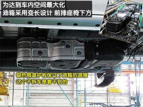 在總裝車(chē)間里我們發(fā)現(xiàn)了NV200的油箱,NV200為了更好的是車(chē)內(nèi)空間最大話,采用了扁平的油箱設(shè)計(jì),油箱位于前排座椅下。在油箱前側(cè)還發(fā)現(xiàn)了隔溫護(hù)板,以保證油箱的溫度。相比這個(gè)是不來(lái)生產(chǎn)車(chē)間是看不到的。