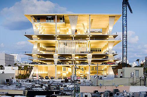 作為行人長(zhǎng)廊的補(bǔ)充,這座“雕塑車庫(kù)”在一個(gè)混凝土-玻璃結(jié)構(gòu)中結(jié)合了300個(gè)車位的車庫(kù),零售商店和一個(gè)頂層海景餐廳。車庫(kù)的每一層都利用了自然光線,而且能夠一覽邁阿密優(yōu)美的天際線。