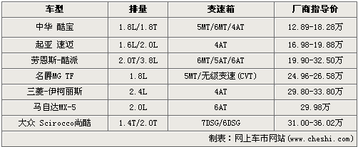 能擁有一輛屬于自己的超級跑車,一直是所有愛好速度的車迷們最終的夢想。想象一下,慵懶的周末下午,自己開著名車大廠的頂級座駕,招搖的見過城市的條條街道,必定會引來無數(shù)羨慕的眼光。不過歸為現(xiàn)實,這些招人眼球的跑車價值昂貴的程度也跟他們的造型一樣,令人乍舌。這時,小跑的優(yōu)勢都凸現(xiàn)出來了,在能滿足您張揚的個性和性能的基本要求的情況下,低廉的價格是它們的殺手锏。今天網(wǎng)上車市就為這一部分車迷帶來了福音,推薦給您8款親民跑車詳細推薦。