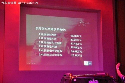 7月2日,鈴木首款中型車凱澤西在國內(nèi)正式上市,共推出2.4L排量6款車型,售價18.98-27.98萬元,具體售價如下表: