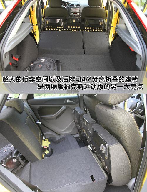 2011款?怂箖蓭\動型后排座椅可以6/4分離折疊,將坐墊完全提起后可以完全放平,方便裝載大體積的物品。后排座椅完全放倒后,行李倉容積由385L擴(kuò)展至1245L。