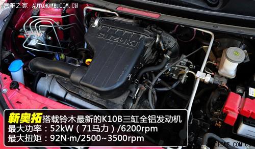 新奧拓搭載了鈴木最新開發(fā)的K10B全鋁發(fā)動(dòng)機(jī),最大功率71Ps/6200rpm,最大扭矩92N·m/2500-3500rpm,低轉(zhuǎn)速區(qū)間即可輸出較高的扭矩,發(fā)動(dòng)機(jī)調(diào)教很適合城市駕駛,發(fā)動(dòng)機(jī)采用正時(shí)鏈條傳動(dòng),終身免更換;另外這款發(fā)動(dòng)機(jī)的燃油經(jīng)濟(jì)性非常出色。