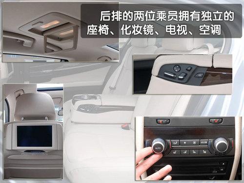 堪比頭等艙環(huán)境的后排空間可以乘坐兩名乘客,他們分別都有自己的獨立座椅。可以進行多向調節(jié)(甚至是調節(jié)成一個大沙發(fā))。同時腰部支撐、2組位置記憶也都是BMW對于后排乘客的周到考慮。BMW新7系轎車擁有人性化的4區(qū)域空調,車內每一位乘員都能夠擁有自己最合適的溫度環(huán)境。此外后排空間人性化配置還包括電動的遮陽簾和帶照明的化妝鏡。此外新7系轎車除740豪華型外,其它配置車型都帶有后排手持電話機,可以直接插入SIM卡進行電話撥打,同時也為駕駛者提供了藍牙免提電話準備功能(740li豪華型有此配置)。