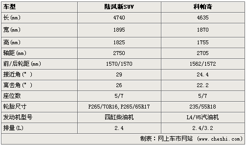 在車(chē)身尺寸上,江鈴陸風(fēng)SUV長(zhǎng)4740mm、寬1895mm、高1825mm,軸距為2750mm,與科帕奇相比略大一些。在比較重要的越野指標(biāo)上,陸風(fēng)SUV接近角為29度、離去角26度。在動(dòng)力上,陸風(fēng)SUV搭載2.4L四缸柴油機(jī),有5座和7座兩種內(nèi)飾設(shè)計(jì)。