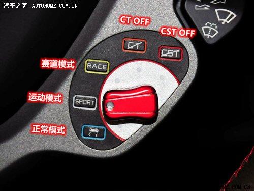 而通過(guò)方向盤上的電子控制系統(tǒng)對(duì)車輛進(jìn)行調(diào)節(jié),可以分為普通模式、RACE、SPORT、CT OFF、CST OFF幾個(gè)選項(xiàng)調(diào)節(jié),駕駛者可以根據(jù)不同的路況和駕駛環(huán)境進(jìn)行調(diào)節(jié),在低附著力情況下可以選擇普通模式,在中附著力的情況下可以調(diào)節(jié)為SPORT,而在賽道或高附著力的情況就可以選擇RACE、CT OFF、CST OFF選項(xiàng)。