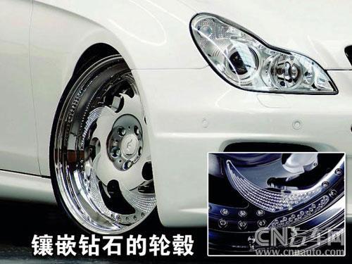 20寸的鍍鉻輪轂是此車(chē)的一大亮點(diǎn),風(fēng)火輪形狀很吸引眼球,動(dòng)感至極,寬邊的樣式讓人很容易聯(lián)想到美國(guó)黑人玩兒的“VIP范兒”。并且在每條幅邊上都鑲嵌有數(shù)不清的鉆石,四個(gè)輪轂上鉆石的價(jià)格就已經(jīng)非常可觀了,就是不知道在輪轂告訴轉(zhuǎn)動(dòng)時(shí),鉆石會(huì)不會(huì)脫落。