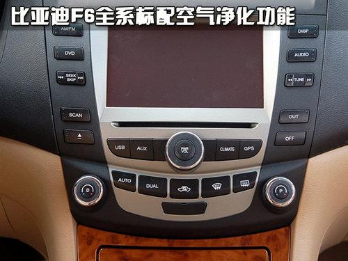 比亞迪F6長(zhǎng)4846mm,寬1822mm,高1465mm的車(chē)身,2740mm的軸距,提供寬敞舒適的的駕乘空間;同時(shí)也提供了高端配置。例如在駕乘舒適性方面,F(xiàn)6新財(cái)富版2.0L尊貴型擁有雙層雙模天窗、雙溫區(qū)獨(dú)立控制自動(dòng)空調(diào)、方向盤(pán)音響控制系統(tǒng)、DVD多媒體系統(tǒng)以及NAVI語(yǔ)音導(dǎo)航系統(tǒng)等配置。