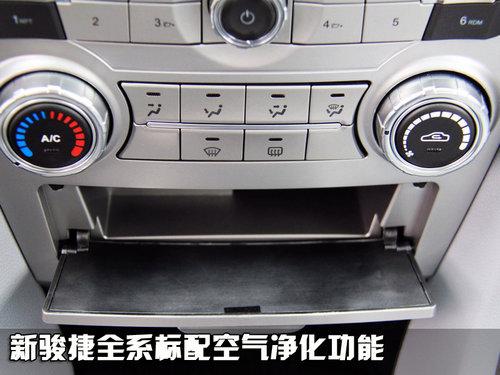 2011款駿捷的車(chē)頭燈配備了透鏡,極具沖擊力的車(chē)頭是我們記住2011款新駿捷的主要特點(diǎn),夸張的霧燈設(shè)計(jì)與大燈的造型上下呼應(yīng),大量鍍鉻裝飾條的加入也讓新駿捷更顯高檔和霸氣。2011款駿捷的中網(wǎng)與老款也有明顯的區(qū)別,豎置鍍鉻裝飾條已經(jīng)不再出現(xiàn),取而代之的是全黑中網(wǎng)配以啞光銀色裝飾框。