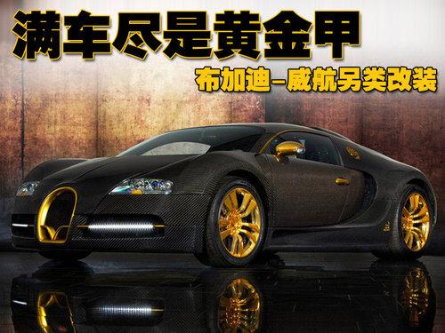 你一定已經(jīng)注意到那個令人難以置信的散發(fā)出淡淡金色光芒的車身外觀,采用特殊的碳纖織物改裝而成。從經(jīng)典的布加迪門拱型進氣格柵、雙叉內(nèi)旋五輻車輪、油箱蓋、門把手以及貫穿車身的裝飾條等鍍金件,更添了布加迪的奢華感。