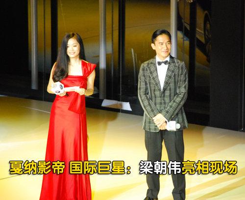 在一段歌舞后,影帝梁朝偉身穿條格西服出現(xiàn)在了舞臺(tái)上,接受了華晨寶馬CEO康思遠(yuǎn)的采訪。朝偉是一位在華人社會(huì)具有影響力的香港著名實(shí)力派演員,因?yàn)槌錾难菁家约霸?jīng)囊括多個(gè)電影獎(jiǎng)項(xiàng)又被傳媒稱(chēng)為“影帝”。