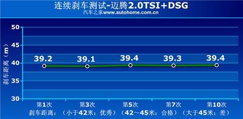 全力剎車時邁騰保持了良好的車身姿態(tài),百公里制動距離39.14米,相信大家都能滿意這個結(jié)果,制動系統(tǒng)反應敏捷,通俗點講:隨踩雖有;腳下力度不斷增大,剎車的感覺也越發(fā)強烈,最終成績沒有讓我們失望。