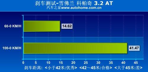 與相對不算特別出色的加速成績相比,科帕奇的剎車還是十分令人滿意的,在汽車之家的測試中,它只用了不到42米就將車輛從100Km/h穩(wěn)穩(wěn)停住,已經(jīng)達到優(yōu)秀的界定標準了,對于重心和底盤更高的SUV車型來說,能取得這樣的成績已經(jīng)很不錯了。
