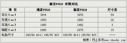 上海大眾即將批量生產(chǎn)的全新第五代POLO在車身尺寸上與國外已經(jīng)上市銷售的車型一致,而與2006年推出的小改款車型POLO勁情大了一小圈。第五代Polo來自大眾的PQ25平臺,長比第四代車型長了5.4厘米,寬度增加了3.2厘米,軸距加長了1厘米,高度僅增加了0.3毫米,在高度上幾乎沒有變化。
