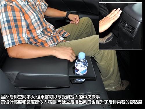 如果不在乎腳部的感受,坐在后排中間的乘客還算是比較舒適的,這主要是因為這里的座椅要更加柔軟而且也帶有頭枕。不過讓傳動軸留給余地為設(shè)計的鼓包使后排地板突起明顯,因此中間乘客很難找到合適放腳的地方。