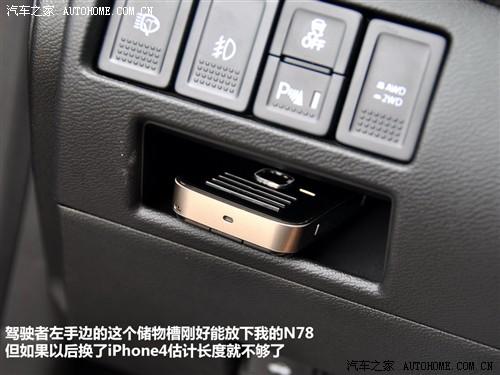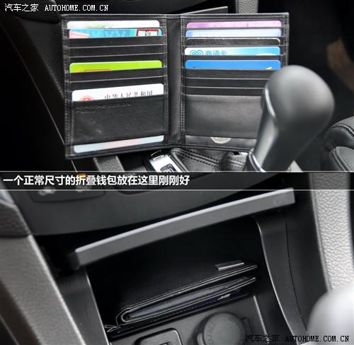 雖然駕駛者左手邊的儲物槽也可以剛好放下手機(jī),但如果你的手機(jī)個(gè)頭比較大,那還是建議你放在擋把前的這個(gè)有蓋的儲物盒里,在放進(jìn)一個(gè)大尺寸的折疊錢包后這里依然有余地可以容納下黑莓、iPhone……