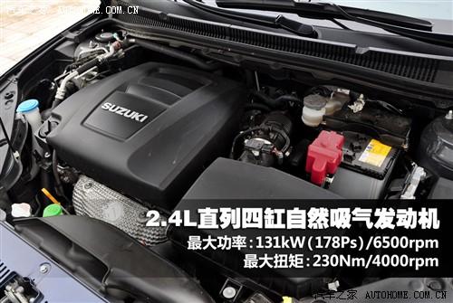 算了,雖然我很在乎別人的感受,但車終究是用來開的,我還是專注于駕駛吧。首先說說動力。進口到國內(nèi)的凱澤西裝備一臺源自超級維特拉的名為J24B的2.4升直列四缸自然吸氣發(fā)動機,經(jīng)過小幅調(diào)教后最大功率為131千瓦(178馬力),最大扭矩230牛米。與之搭配的變速箱有兩種:6擋手動變速箱和CVT無極變速箱。我們測試的四驅(qū)豪華版自然是裝備CVT變速箱的車型。