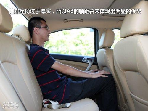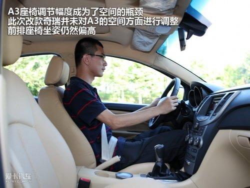 A3座椅調(diào)節(jié)幅度成為了空間的瓶頸,此次改款奇瑞并未對(duì)A3的空間方面進(jìn)行調(diào)整,前排座椅坐姿仍然偏高,身材超過1.82米的人很難找到太舒服的坐姿,并且座椅的形狀也不利用空間最大化的利用。