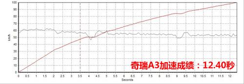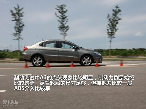 在0-100公里時速加速測試中,A3的避震系統(tǒng)有些拉不住,車頭抬升的比較明顯,205的瑪吉斯輪胎也不能提供足夠的抓地力,起跑的不利對成績應(yīng)該會有些影響。其實(shí)A3的新發(fā)動機(jī)動力輸出很線性,這也是自主品牌廠商一直都青睞的調(diào)教方式,所以你無法從中找到強(qiáng)烈的爆發(fā)點(diǎn)。最終的成績也是中規(guī)中矩的,12.4秒的成績比之前的老款發(fā)動機(jī)已經(jīng)有了明顯提升。