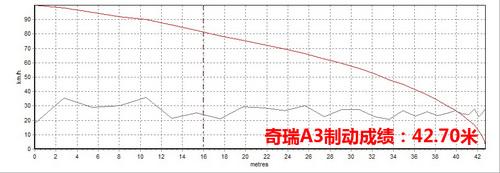 100公里時速到靜止的制動測試中A3點(diǎn)頭現(xiàn)象比較明顯,制動力倒是始終比較均衡,輪胎的尺寸足夠,但抓地力比較一般,ABS介入比較早。A3的剎車系統(tǒng)很類似于歐洲車型,從前半段開始制動的效果就會非常明顯,會讓你對剎車系統(tǒng)產(chǎn)生信心,最終42.70米的成績屬于平均水平,多次的制動并未有明顯的熱衰退。