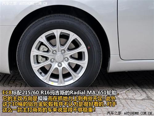 作為一款中型豪華車型,帝豪EC8必須使用鋁合金輪轂,不過(guò)圖中的這個(gè)10條幅樣式我個(gè)人不認(rèn)為很好看,或者說(shuō)是顯得不夠穩(wěn)重。此外,為了配合中型車應(yīng)該有的靜謐性,在輪胎上使用了瑪吉斯產(chǎn)的MA-651型靜音輪胎,同樣由于這個(gè)輪胎是偏向于抑制輪噪,因此在抓地力上有些不足,不過(guò)對(duì)于一款注重乘坐感的車來(lái)說(shuō),太強(qiáng)的抓地力不是重要的。