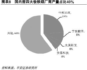 國內(nèi)前四大釹鐵硼廠商產(chǎn)量占比40%