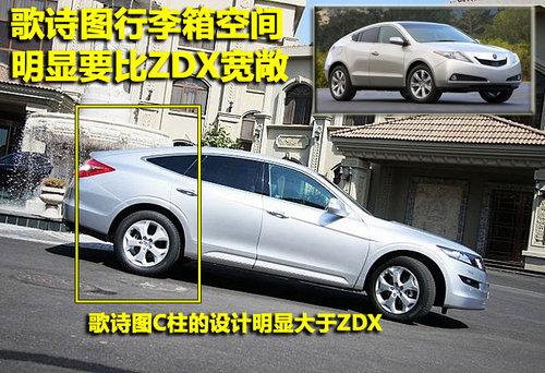 廣汽本田歌詩圖由于車身長度和軸距都要比謳歌ZDX長,所以意味著歌詩圖的內部空間要比ZDX寬敞,尤其是行李箱的空間,這點從歌詩圖C柱的設計就可以看出。另外廣汽本田歌詩圖的輪轂兇猛,與其身份相符動感十足。