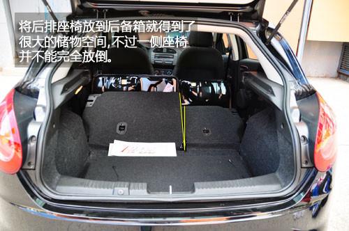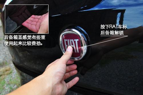 后備箱開啟采用了電磁感應(yīng)按鈕,稍用力按壓FIAT標(biāo)志即可開啟一個角度,設(shè)計頗為精巧。后備箱的容積并不算大,擱下一個旅行背包已經(jīng)占據(jù)了1/3的體積,后排座椅支持4比6放到,雖然不能完全放平,但是也為后備箱提供了更多空間。總之,博悅的后備箱應(yīng)付日常使用是完全沒有問題的。只是后備箱蓋感覺有些重使用起來稍稍有些費勁。