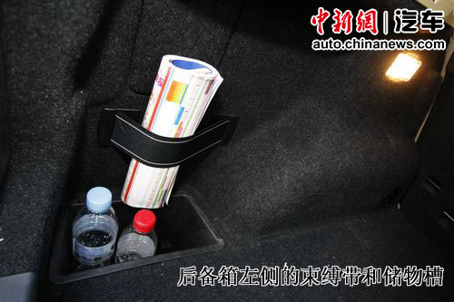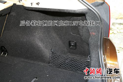 后備廂空間中規(guī)中矩,不過后排配有三個獨立的座椅,可分為三部分放平并可調(diào)節(jié)角度,將后備廂容量從420升增加到1350升。由于采用缺氣保用輪胎,備胎的位置讓給了電瓶,另外還有淺淺的一層九宮格似的儲物板,可以放些書籍一類的雜物。