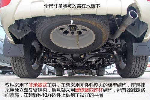 馭勝采用了非承載式車身,車架采用剛性強(qiáng)度大的梯型結(jié)構(gòu),前懸掛采用獨(dú)立雙叉臂結(jié)構(gòu),后懸架采用螺旋簧四連桿結(jié)構(gòu),能有效減緩路面震蕩,這樣的設(shè)計(jì)在越野性和舒適性上會(huì)有很好的平衡。