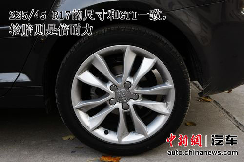 輪轂造型很是精致,既兼顧活力又不失沉穩(wěn)。225/45R17的尺寸和GTI一致,輪胎則是倍耐力。雖然和一些號稱運動的車型動輒18英寸以上的輪轂相比好像還差了一截,但這樣的尺寸在這個型號的車上已經算是比較厚道了。