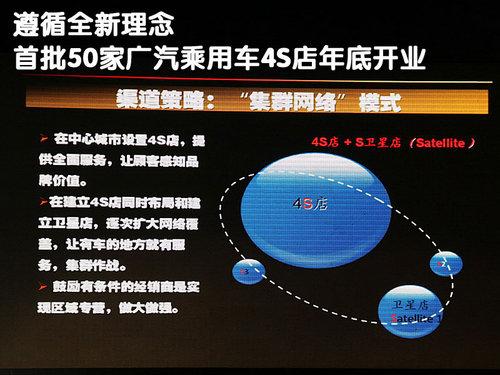 廣汽乘用車總經(jīng)理吳松透露,“4S店+S衛(wèi)星店(Satelite)”的渠道模式,是吸收了廣汽本田和廣汽豐田的成功經(jīng)驗,同時剔除了目前4S機制的一些通病,經(jīng)過兩年多反復(fù)論證和修訂而成。通過4S店和衛(wèi)星店的同時布局,可以逐次擴大廣汽乘用車的網(wǎng)絡(luò)覆蓋,并且解決4S店成本過高與1S店形象欠佳之間的矛盾。從而把更多的實惠給到消費者。
