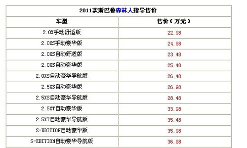 中新網(wǎng)12月20日電 今日,斯巴魯在廣州車展上正式推出了2011款森林人,此次上市新車共有11款車型,價(jià)格區(qū)間為22.98萬元-36.98萬元。斯巴魯在本次車展上展出了其中的Forester森林人2.5XS自動豪華版和Forester森林人S-EDITION自動豪華版。
