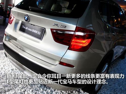 外觀方面全新寶馬X3外型延續(xù)了寶馬X系車(chē)型的特點(diǎn),雖然X車(chē)系中往下有X1、往上有X5及X6,但新X3并不是縮小版的X5,很多獨(dú)有的外型特征,顯示出X3與眾不同的性格。