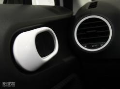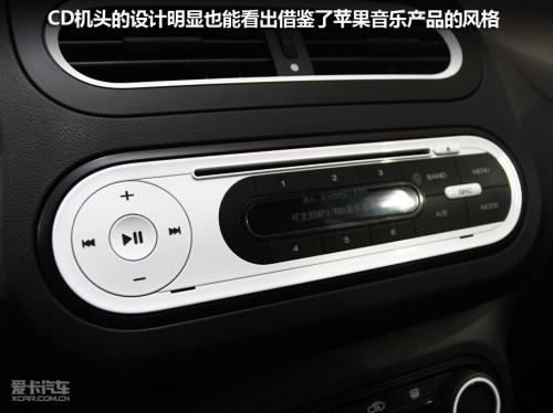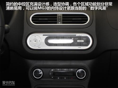 中控區(qū)域,出風(fēng)口與音響、空調(diào)兩個功能區(qū)塊造型風(fēng)格保持一致,簡約而富有整體感。特別是音響控制面板,白色的面板和同樣類似于蘋果音樂播放產(chǎn)品的風(fēng)格,相信會吸引大批追求時尚的年輕人。另外雖然這款展車為MG3低配車型,但仍然安裝了自動空調(diào)。