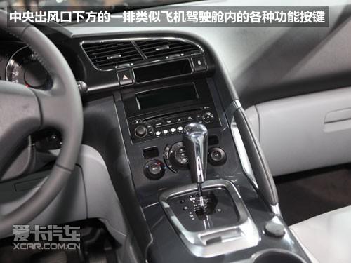 法國車的內(nèi)飾一向喜歡把GPS導(dǎo)航的液晶屏設(shè)計在中控臺的上方,但我們在廣州車展上見到的這部確沒有配備GPS導(dǎo)航系統(tǒng)。另外這款標(biāo)志3008還可以選配HUD抬頭顯示系統(tǒng),這套抬頭系統(tǒng)并不是將車況信息投射在前檔玻璃上而是投射在儀表前方的一塊透明玻璃上,對于駕駛員的安全提供了更多的保障。