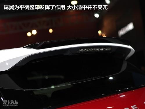 車尾左方EVOQUE表明身份,RANGE ROVER標(biāo)示屬攬勝系列,以及出自路虎世家,簡(jiǎn)潔明了,造型與家族式風(fēng)格相近。