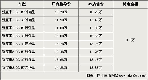 近日從一汽大眾北京地區(qū)4S店了解到,近期購(gòu)買新寶來(lái)系列車型的消費(fèi)者可以得到全系5000元的現(xiàn)金優(yōu)惠。新寶來(lái)全系共分8個(gè)車型,目前新寶來(lái)1.6L車型經(jīng)優(yōu)惠5000元現(xiàn)金后,全系入門級(jí)的1.6L手動(dòng)時(shí)尚型售價(jià)降為10.28萬(wàn)元。新寶來(lái)2.0L車型優(yōu)惠5000元后,最高配的2.0L 手動(dòng)豪華售價(jià)跌破了14萬(wàn)元,僅為13.88萬(wàn)元。新寶來(lái)店內(nèi)無(wú)現(xiàn)車,預(yù)購(gòu)買者需交定金5000元約等兩周可提車。