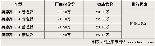 廣州本田旗下的MPV車型——奧德賽自引進(jìn)國內(nèi)市場以來,憑借著時尚的外觀和寬敞的內(nèi)部空間取得了不錯的市場表現(xiàn)。隨著第八代雅閣、新飛度、鋒范的相繼上市,全新的奧德賽車型也即將引入國內(nèi)生產(chǎn)。近日我們從廣州本田內(nèi)部人士處了解到,目前銷售的奧德賽車型現(xiàn)已全部停產(chǎn),新款車型將在8月份正式推出。與此同時根據(jù)網(wǎng)上車市價格檢測系統(tǒng)顯示,目前購買老款奧德賽車型可以得到1.5萬元的現(xiàn)金優(yōu)惠。具體車型售價見下表: