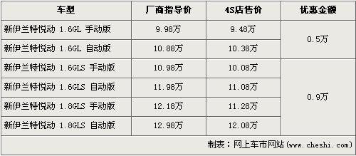 據(jù)北京現(xiàn)代經(jīng)銷商處銷售人員介紹,新伊蘭特悅動全系車型最高優(yōu)惠9000元。1.6L車型經(jīng)5000元優(yōu)惠后全系入門級的1.6L GL手動版的售價為9.48萬元,是全系的最低價格。銷售人員還介紹,1.6L車型現(xiàn)車充足,而1.8L車型店內(nèi)現(xiàn)車有限顏色不全,欲購買無現(xiàn)車的1.8L車型消費者需交納3000元現(xiàn)金,等一周后可提車。