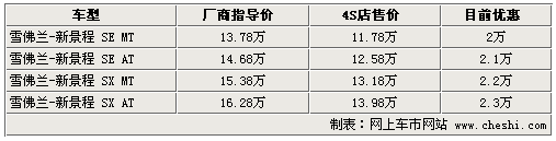 據(jù)4S店銷售人眼介紹:目前新景程現(xiàn)車非常充足,顏色也較為齊全,不過缺少紅色、金色。目前優(yōu)惠幅度在2萬元-2.3萬元之間,最低配置車型已經(jīng)下降至11.78萬元。作為一款標(biāo)準(zhǔn)B級轎車,新景程的性價比優(yōu)勢非常明顯。