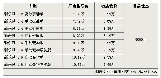 據(jù)4S店銷售人員介紹:目前新款樂(lè)風(fēng)最高優(yōu)惠達(dá)8000元,整體而言現(xiàn)車較充足,但1.2升車型需要預(yù)訂,預(yù)定周期為1-3周。由于1.2升車型動(dòng)力較弱且性價(jià)比并不高,所以銷量較少自然車源也不充足。1.4升排量車型是樂(lè)風(fēng)銷量主力,車型貨源充足,有興趣的朋友可以到店洽談。