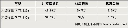 據(jù)經(jīng)銷商銷售人員介紹,大切諾基3.7L車型的優(yōu)惠金額為2.69萬(wàn)元,而高排量的5.7L車型優(yōu)惠金額為5.69萬(wàn)元,達(dá)到了全系的最高。在售的Jeep-大切諾基共分為3.7L四驅(qū)和5.7L四驅(qū)兩個(gè)車型。3.7L四驅(qū)型經(jīng)2.69萬(wàn)元優(yōu)惠后,售價(jià)降為了39.5萬(wàn)元。而排量稍大的5.7L四驅(qū)型的優(yōu)惠金額為5.69萬(wàn)元,降價(jià)后的售價(jià)為54萬(wàn)元。