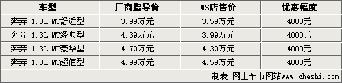 據(jù)長安轎車4S店銷售人員介紹,奔奔目前現(xiàn)車都比較齊全,但與上月相比,優(yōu)惠幅度明顯有所減少。目前奔奔1.3L四款車型只能優(yōu)惠4000元,比前一段時間少了1000元。但銷售人員也表示,如果消費(fèi)者到店詳談,還可能有進(jìn)一步優(yōu)惠的余地。
