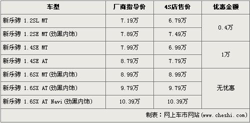 雪佛蘭新樂騁是在老款樂騁的基礎(chǔ)上,針對中國市場需求升級的一款A(yù)0級轎車。無論外觀、內(nèi)飾還是油耗方面,新樂騁都有著出色的表現(xiàn)。它的競爭對手是POLO、206等車型,但與其對手相比,新樂騁表現(xiàn)得并不突出。近日據(jù)網(wǎng)上車市價格系統(tǒng)檢測顯示,新樂騁有1萬元的最高優(yōu)惠幅度,具體車型價格請看下表:
