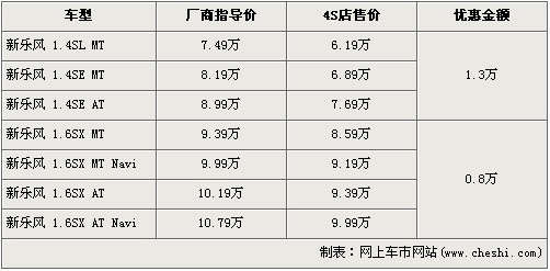 新樂風是雪佛蘭旗下的三廂入門級家用車銷售主力,但由于上市多年,消費者對于它也產(chǎn)生了審美疲勞。在今年的5月份,帶有家族新特征的小改款新樂風來到世人眼前,外觀的改進讓此車動感不少。近日據(jù)網(wǎng)上車市價格系統(tǒng)檢測顯示,新樂風出現(xiàn)了最高1.3萬元的優(yōu)惠,具體價格詳情請看下表: