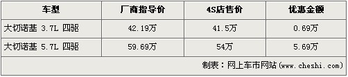 吉普大切諾基是吉普家族中極具個(gè)性的一款大尺寸車(chē)型,在推出3.7L排量車(chē)型后,消費(fèi)者的選擇空間更大,同時(shí)帶給駕乘者完全不同的駕駛體驗(yàn)。根據(jù)網(wǎng)上車(chē)市價(jià)格監(jiān)測(cè)系統(tǒng)顯示,目前大切諾基最高優(yōu)惠5.69萬(wàn)元,具體車(chē)型以及價(jià)格如下: